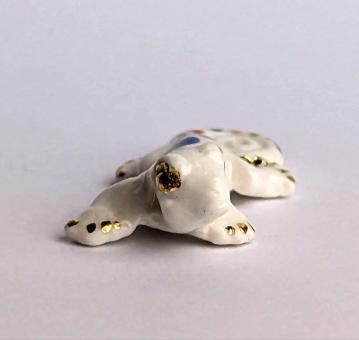 Suchen Sie nach etwas wirklich Extravagantem für Ihre Sammlung? Dann ist unser dicker dunkelrosa Gekko mit goldenen Augen und einem goldenen Schwanz genau das Richtige für Sie! Handbemalt und mit einer Größe von nur 2 cm, ist er der Hingucker in jedem Raum.