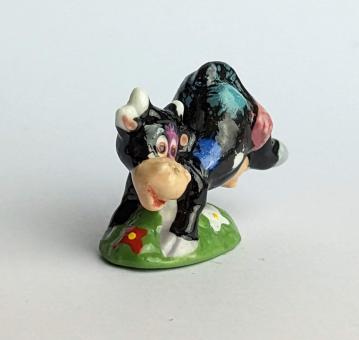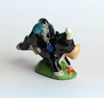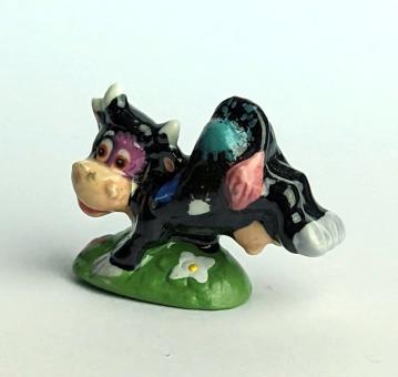 Die künstlerisch liebevoll handbemalte Keramikfigur einer hüpfenden, glücklichen Kuh auf einer Blumenwiese ist ein wunderschönes und einzigartiges Kunstwerk für jeden Kuh-Liebhaber. Mit einer Größe von nur 2 cm passt diese Figur perfekt in jedes Regal oder jede Vitrine und ist somit auch eine tolle Ergänzung für jede Sammlung.